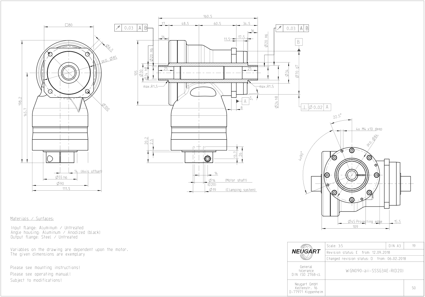 WGN hollow shaft angle planetary gearbox adopts hypoid gears, which are installed in the way of expanding and tightening force. The dimension drawing of WGN hollow shaft gearbox can be downloaded online, and the CAD drawing of selection can be downloaded online. The NCP selection software covers common motors and applications in the market. It can provide dynamic load data and load diagrams according to the application that does not need to be adapted. Provide free NCP software and technical guidance, you can contact for technical consultation.